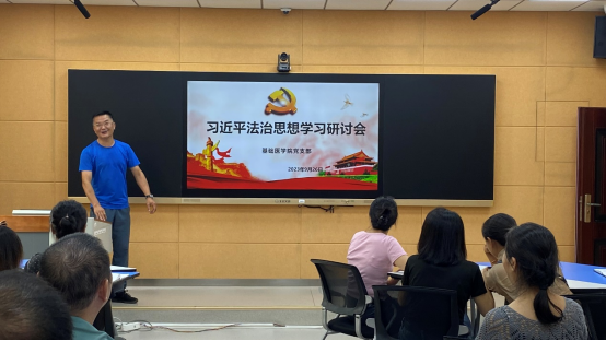 2023年9月26日,sunbet申搏官方网站开展学习贯彻习近平法治思想研讨会,sunbet申搏官方网站党支部副书记周洁主持学习时强调,要深入学习贯彻党的二十大精神和习近平法治思想,全面加力提速南医法治化进程,筑法治之基、行法治之力、积法治之势,为学校发展提供坚实法治保障。