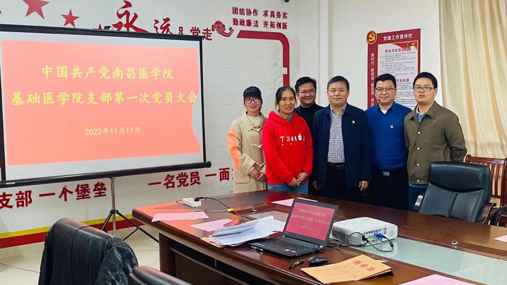 校党委委员、副校长赖国文与当选的首届支部委员会委员合影。(刘琦 摄)