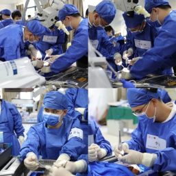 培训班最令人瞩目的部分是学员们亲身动手实操的环节。在两位教授和各位指导老师耐心细致指导下,学员们分成4个小组进行尸头标本解剖操作,亲身体验手术的每一个细微之处,他们个个聚精会神、小心翼翼地将理论知识与实践紧密结合在一起,深入了解神经解剖结构和手术技巧,通过对真实的尸头标本进行手术入路解剖操作,学员们更加直观地掌握了手术入路的选择、神经结构的保护以及手术技巧。