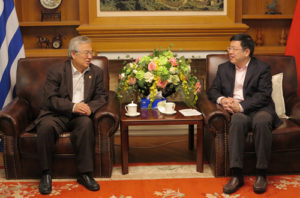 在希腊期间,代表团还拜访了中国驻希腊大使邹肖力。韩震对驻希腊使馆对我校希腊语专业及希腊研究中心建设、人才培养等方面提供的帮助表示感谢,并介绍了我校响应国家号召,积极践行“语种全覆盖”和“区域国别研究全覆盖”的发展战略。邹肖力介绍了使馆在促进中希两国文化、教育合作方面做的工作,并强调了语言教育在对外经济发展方面起到的重要作用。希望北外保持学科优势,继续培养高水平复语型、复合型人才,积极服务国家发展战略。