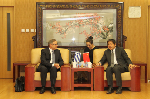 卡普萨利斯高度赞扬了北外学生在约大学习期间展现出来的综合素质,并对其取得的优异成绩表示祝贺。他认为,中希两国在教育合作方面尚存在诸多空白。除合作办学外,还可整合两校资源,在合作编写《希中词典》和希腊语教材、联合培养研究生等方面进行探索。此外,他还建议北外在约大设立中国文化展厅,并派遣教师赴约大讲授汉语和中国文化课程。