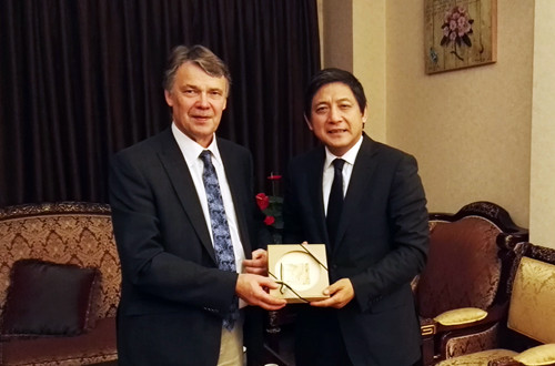 国际交流与合作处长柯静,欧洲语言文化学院院长赵刚、副院长董希骁,芬兰语教研室主任李颖等参加了会见。