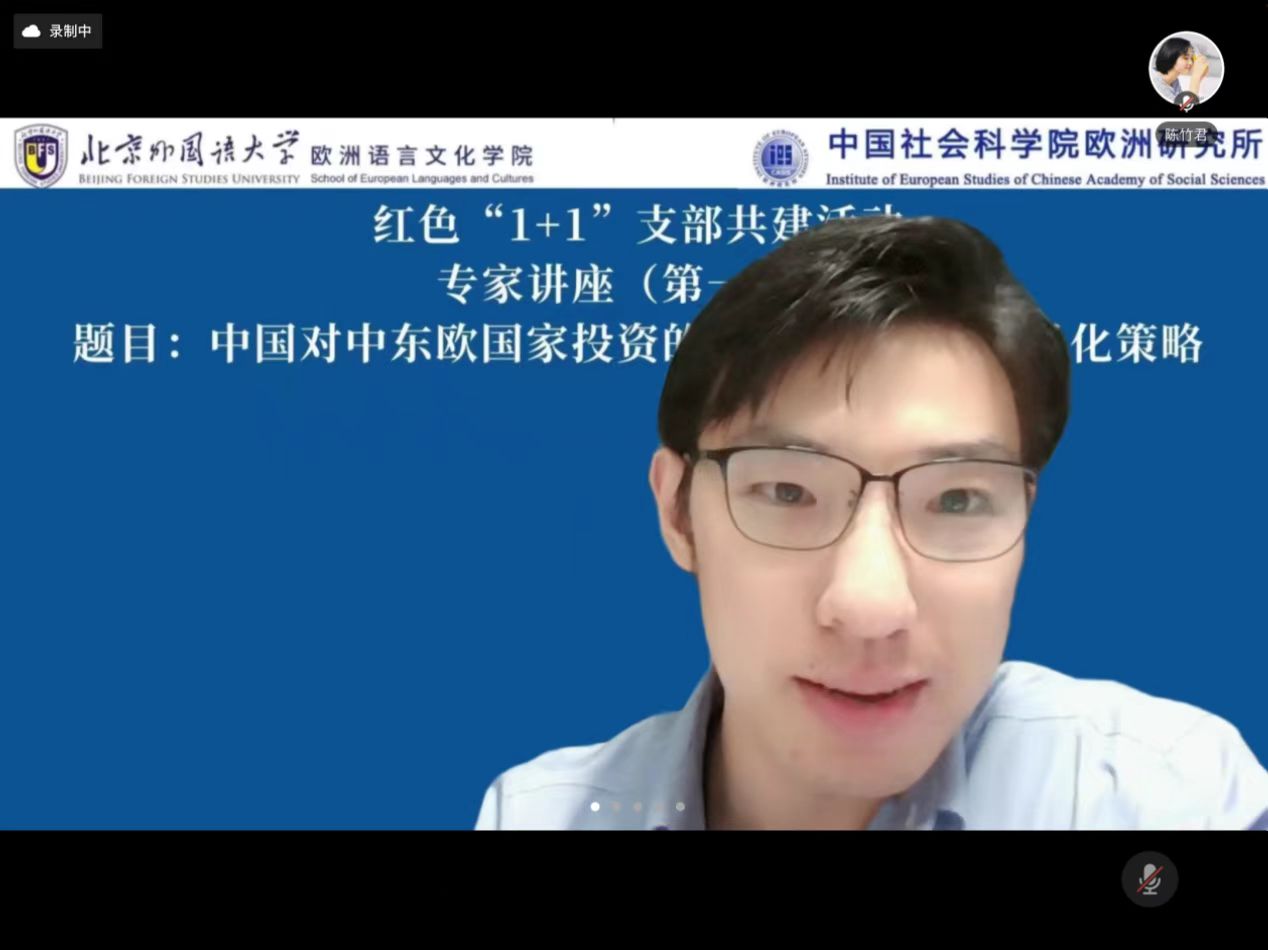 7月22日,欧洲语言文化学院与中国社会科学院欧洲研究所举办红色“1+1”支部共建活动,特邀欧洲所中东欧研究室韩萌老师作题为《中国对中东欧国家投资的机遇、挑战与差异化策略》的讲座。