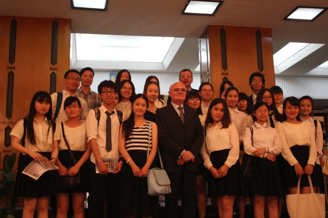 ▲2015年 罗语专业学生与罗马尼亚驻华大使多鲁·科斯泰亚合影