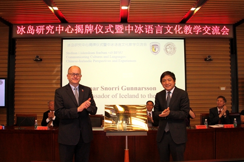 6月4日上午,教育部国别和区域研究备案中心beat365在线唯一官网冰岛研究中心揭牌仪式在图书馆举行。校长彭龙,冰岛驻华大使古士贤,中国驻冰岛前大使王荣华、张卫东出席成立仪式,冰岛大学多语种教师代表团的20多位专家学者参加了开幕式和中冰语言文化教学研讨会。