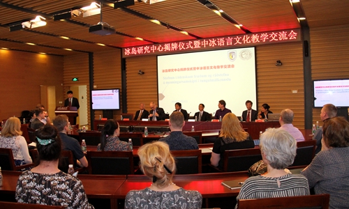 当天下午,冰岛研究中心举行了第一次学术活动:“语言与文化交流:中冰视角与经验”教学交流研讨会。在“冰岛语教学和冰岛研究”的研讨环节,冰岛大学多位冰岛语教师与我校冰岛语教师王书慧、外籍专家 Eiríkur分别就冰岛语教学和文化传播问题展开发言和交流。在多语种平行讨论环节,冰岛大学的英语、西班牙语、法语、俄语、日本民俗、丹麦语、拉丁语、汉学教师分别就教学中的语言学问题、文学教材选编、文化差异处理、学生文化接受、教学法问题等发表见解。作为回应,我校文秋芳教授以“产出导向教学法”为题,张建华教授以“中国高校俄语文学教学的经验和问题”题,展示了我校教师的深厚语言功底和专业水平,国际关系学院东西方关系中心主任田辰山以“说文解字”的方式,解读汉语背后隐匿的东方哲学,让在座的冰岛学者痴迷。拉丁语教师麦克雷、丹麦语教师王宇辰介绍了我校的拉丁语和丹麦语教学情况,展示了多语种的教学科研实力。