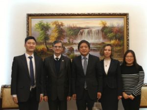 12月15日上午, 罗马尼亚布加勒斯特大学代表团访问北外。彭龙校长、孙有中副校长分别会见并宴请了到访的布大校长M. 杜米特鲁(Mircea DUMITRU)一行。