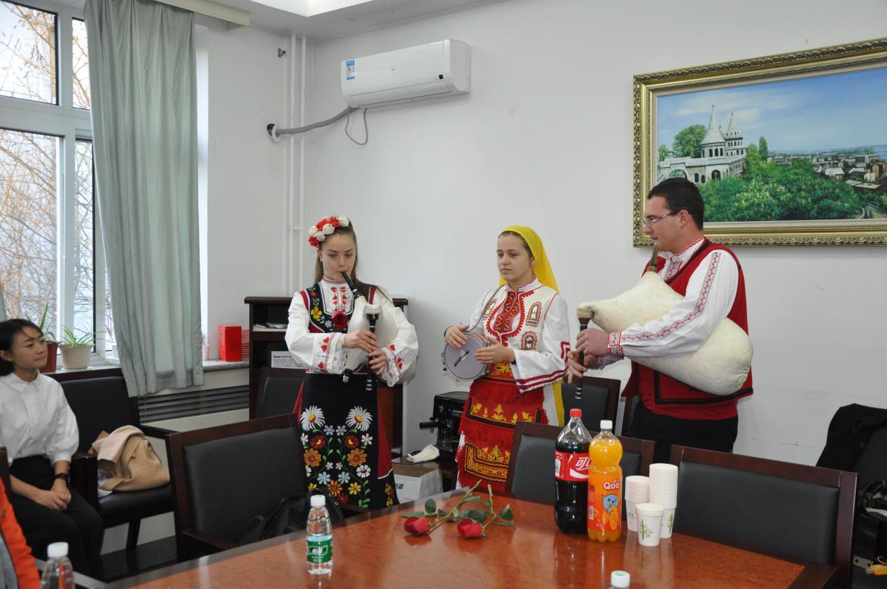 12月1日下午,应我校欧洲语言文化学院的邀请,保加利亚色雷斯青春乐队在使馆工作人员的陪同下来到我校,和保语专业的学生共同开展了丰富多彩的文化交流活动。