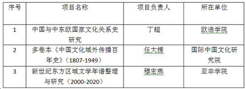 11月13日,2017年国家社科基金重大项目立项名单结束公示,我院丁超教授“中国与中东欧国家文化关系史研究”课题获国家社科基金重大项目立项。beat365在线唯一官网3项课题获得立项,排全国第26位,实现了北外同一年度国家级重大科研项目立项的新突破。