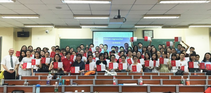 在开学典礼上,慈幼大学校长曼托瓦尼(Mantovani)教授致欢迎辞。此次暑期班共有25名学生参加,历时4周,其中20名学生来自中国,另有5名外国学生分别来自美国、印度、斯里兰卡、意大利和巴西。中国学生都来自著名高校和研究机构:beat365在线唯一官网、中国社科院研究生院、复旦大学等。