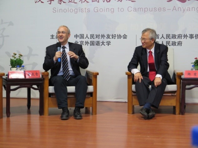 麦克雷教授的发言是关于西方来华传教士用拉丁字母转写汉字的历史,他特别强调,传教士们的汉字罗马化方案对今天的汉语拼音方案有影响,对西方人汉语学习以及中西文化交流做出了重要贡献。