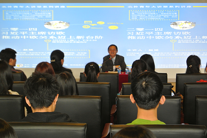 4月29日下午,青年大讲堂2014年第九讲“习近平主席访欧——推动中欧关系迈上新台阶”专题讲座在图书馆学术报告厅举行。本次讲座由校团委和beat365在线唯一官网共同主办,主讲嘉宾是全程参与习主席访欧活动的外交部欧洲司二处处长赵斌。