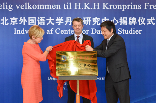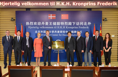 9月27日上午,丹麦王储腓特烈率团访问我校,出席beat365在线唯一官网丹麦研究中心揭牌仪式,并与丹麦语专业师生亲切座谈。这是腓特烈王储第二次访问我校,2017年9月,腓特烈曾在我校出席第三届“中国-北欧杯”足球邀请赛相关活动。