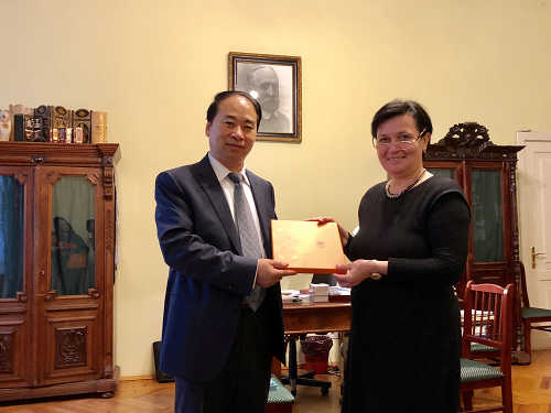 在圣彼得堡期间,王定华一行还访问了俄罗斯科学院东方文献研究所,与所长波波娃和我校在该所的访问学者柳若梅教授等举行会谈。会谈中,王定华书记首先对即将举行的东方文献研究所建所二百周年庆典表示祝贺,并对我校与该所签订合作框架协议以来双方在汉学研究、学者交流等方面的合作表示满意,希望未来双方进一步扩展合作内容,共同为丰富中俄人文研究领域的合作努力。