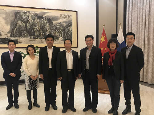 10月14日,代表团一行拜访了中国驻芬兰大使馆,与大使陈立、使馆政治处主任张晨晖、随员张海宇等进行了会谈。王定华介绍了我校多语种建设情况、芬兰以及北欧地区语种的发展近况以及我校在北欧区域国别研究方面的规划。陈立表示很高兴了解到母校近年的发展,使馆会大力支持我校与芬兰的交流合作。