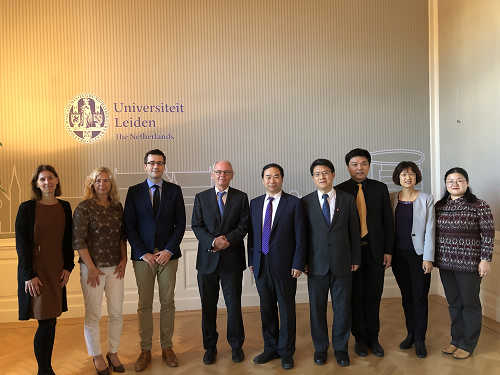 10月18日,王定华一行访问了莱顿大学,莱顿大学人文学院荷兰中心前主任奥尔夫• 普拉姆斯特拉作为莱顿大学校长卡洛•斯托克的特别代表,对代表团一行表示欢迎,并对校长因病不能出席表示歉意。莱顿大学参加会谈的还有人文学院荷兰中心主任里克•洪宁斯、国际交流处处长玛丽克•德•布伊吉、中国合作顾问英格丽德•胡奇等。王定华对莱顿大学多年以来给予北外荷兰语专业的支持表示感谢,希望两校在现有基础上扩大合作交流。双方围绕加大师生交流、共建荷兰研究中心、合作开展中国研究项目等事宜进行了深入讨论,一致认为两校在荷兰研究中心建设、国别区域研究方面有很大的合作空间,并就签署两校交流协议的补充条款达成了初步共识。