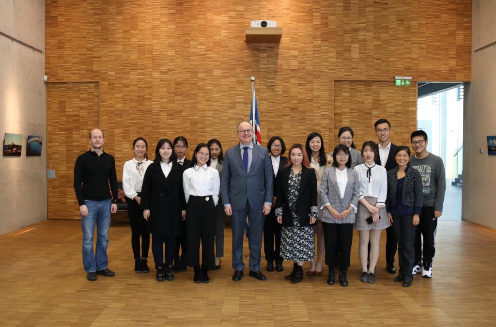 11月16日下午,应冰岛共和国驻华大使古士贤阁下邀请,beat365在线唯一官网冰岛语班学生前往冰岛驻华大使馆庆祝“冰岛语日”。冰岛驻华大使古士贤阁下,签证官约恩•埃纳尔,和使馆工作人员、我校冰岛语毕业生徐冬接待了学生们。