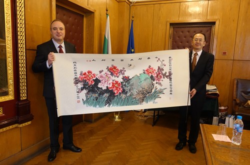 12月9日,代表团一行在索非亚孔子学院中外方院长的陪同下视察了孔子学院教学点“保中教育中心”。贾文键与保中教育中心的师生进行了交流,并询问了在该校工作的索非亚孔子学院志愿者教师的工作生活情况。贾文键向“保中教育中心”赠送了我校汉语国际推广多语种基地资助出版的保加利亚版《汉语小词典》。
