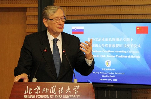12月14日下午,斯洛文尼亚前总统图尔克(Danilo Türk)访问我校,参加荣誉教授证书授予仪式,受聘为我校荣誉教授。