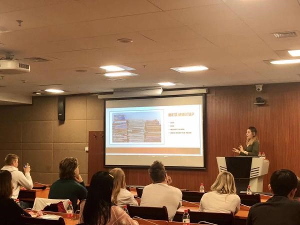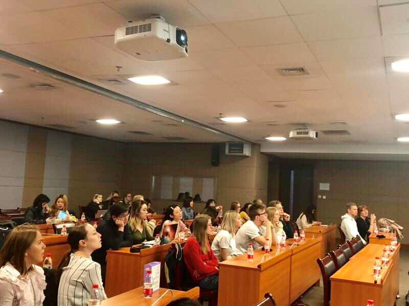 芬兰语专业学生精心准备,为芬兰客人带来了四个主题的介绍展示,分别为“中国的教育体系”、“中国高中生活及高考”、“北外的生活”以及“中国年轻人的兴趣爱好。”介绍展示之后,芬兰工人学院师生围绕展示内容,就感兴趣的话题进行提问,芬兰语专业师生详细解答。芬兰客人纷纷表示对当前中国教育体系发展现状以及中国年轻人的生活有了更加直观的了解。带队老师Samantha Eldred女士为芬兰语专业学生所展现出的芬兰语水平感到惊讶,对老师与同学们为这次活动所做的准备表示衷心感谢。