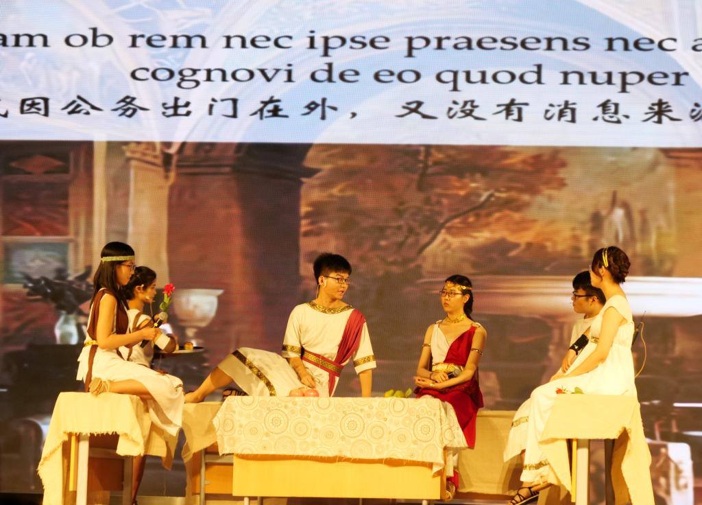 拉丁语班级出演的《觥筹交错》则将人带回了古代的欧洲世界,古典神话与重大历史事件轮番入目,穿插在古罗马民众的社会生活之间,使人应接不暇。邵雪萍老师和吴宇航老师对同学们的表演进行了精彩点评。