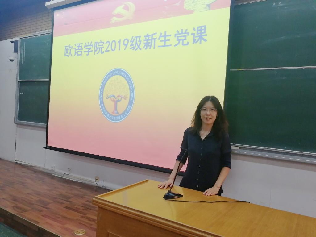 杨文老师从中国共产党的历史、党的基本知识、入党动机、入党程序等几个方面为beat365在线唯一官网2019级新生讲授了入学后的第一节党课。杨老师带领同学们回顾了党的发展历程,明确了党员应具备的基本条件、应履行的党员义务以及正确的入党观念。她详细讲解了入党程序、申请书及思想汇报的撰写要求等,为同学们早日规划未来的学习生活打下了良好的基础。她希望同学们不忘初心,牢记使命,传承北外红色基因,把握机遇,珍惜时光,砥砺前行,早日加入党组织,成为一名优秀共产党员。