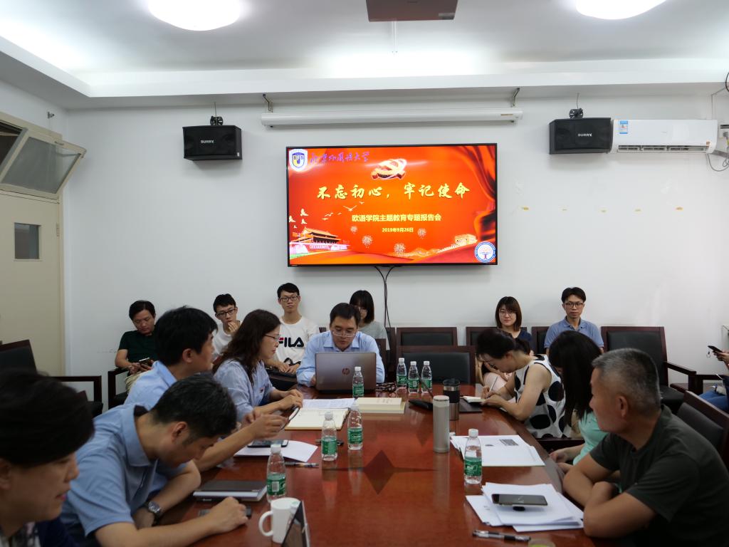 9月26日下午,beat365在线唯一官网在主楼307会议室举行“不忘初心、牢记使命”主题教育专题报告会,beat365在线唯一官网马克思主义学院党总支书记祝和军做了题为《如何恰当地理解共产党人的“初心”和“使命”》的专题报告。beat365在线唯一官网领导班子成员、党总支委员和全体师生党员参会,会议由学院党总支常务副书记杨文老师主持。