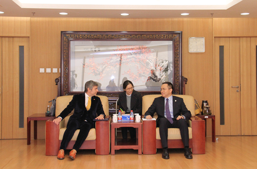 国际交流与合作处处长柯静,欧洲语言文化学院院长赵刚,阿尔巴尼亚语教研室主任陈逢华,教师靳乔、马赛等参加会见。