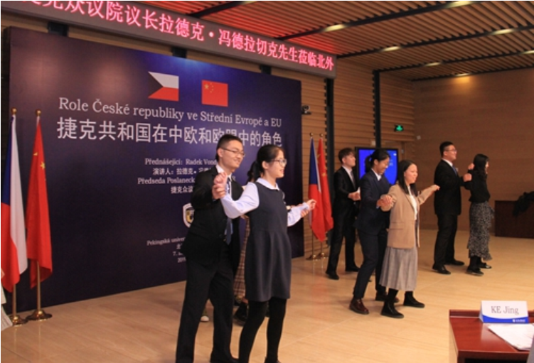 参加活动的还有中国外交部官员,我校国际交流与合作处处长柯静,欧洲语言文化学院院长赵刚、副院长董希骁及捷克语专业师生。