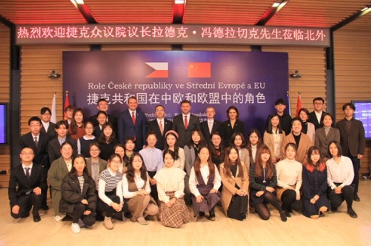 11月7日上午,捷克共和国国会众议院议长拉德克·冯德拉切克率团访问我校并发表演讲。捷克驻华大使佟福德、捷克众议院经济委员会主任拉迪姆·菲亚拉、捷克工贸部副部长玛蒂娜·陶贝洛娃等随团来访。校长杨丹与议长代表团会谈,并出席演讲活动。演讲活动由副校长闫国华主持。