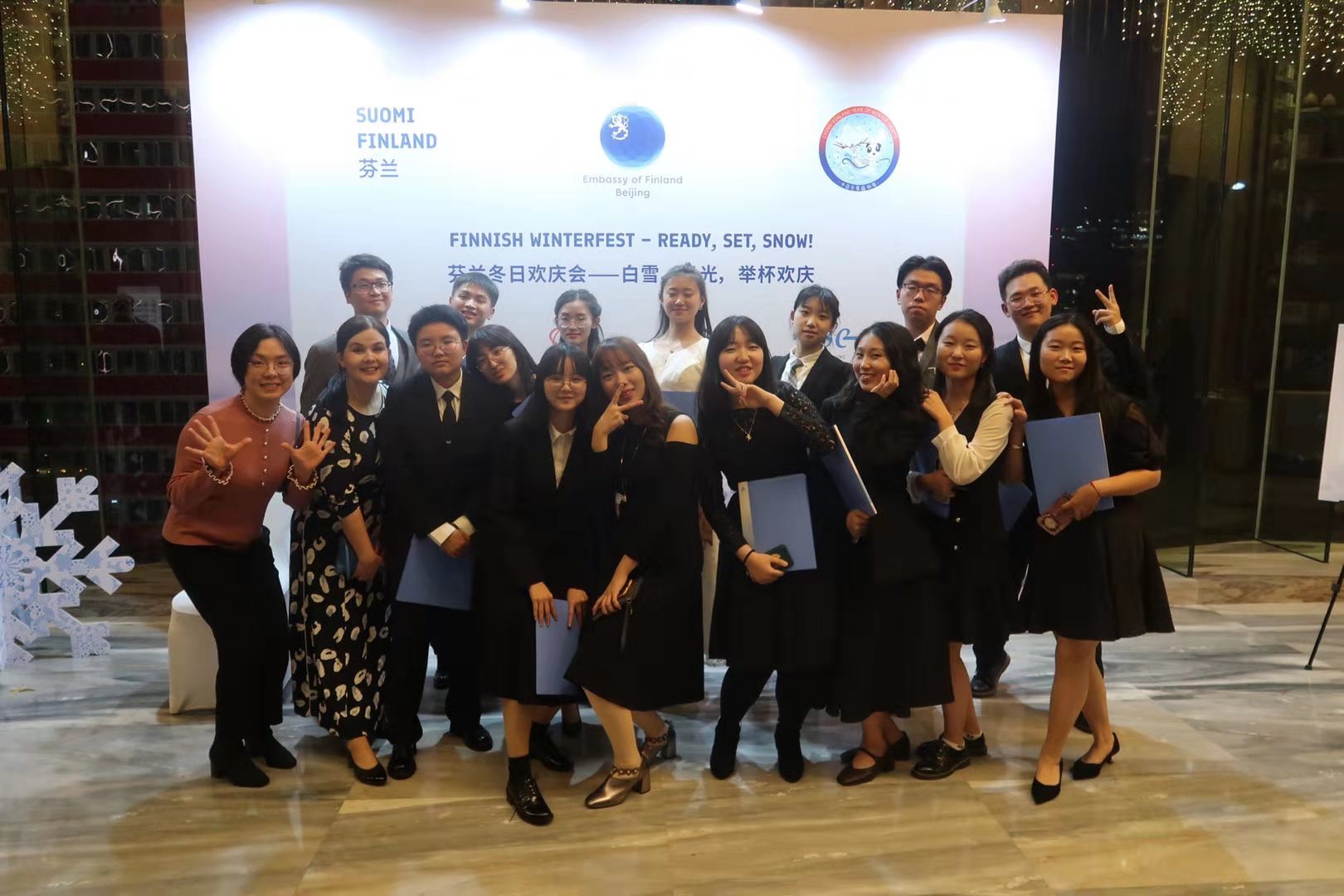 12月10日晚,芬兰驻华大使馆主办芬兰冬日欢庆会,庆祝芬兰独立102周年暨“2019中芬冬季运动年”圆满闭幕。我校19级芬兰语专业师生应邀参加活动并表演合唱。受邀参加本次招待会的还有中芬两国政府和企事业单位人员以及其他高校教师代表。中国外交部副部长马朝旭应邀出席并致辞。
