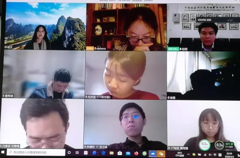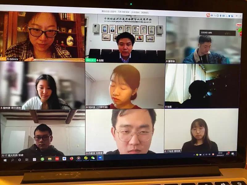 随后,正在意大利、芬兰、希腊、保加利亚、匈牙利等国留学的同学们相继发言,他们对学院各位老师长期的关心与帮助表示感谢,同时也介绍了所在国的疫情防控情况,相关的抗疫举措,个人生活与学习状况等,就个人关心的问题与学院老师们进行交流。海外留学生们目前均处于居家隔离状态,身体健康,心态积极,在生活物资采购和防疫物资获取方面也得到了当地华人群体或是当地使馆的支持。尽管所在国家已经停止线下教学,他们也都通过不同方式实现了“停课不停学”,或是参加对象国所在学校的线上教学活动,或是熬夜参加国内的线上专业课程及双学位课程。