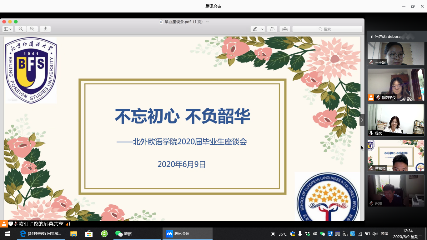 会上,毕业生代表们纷纷表达对母校和老师们的感恩之情,畅谈大学四年的感悟,总结在校学习与生活经验,也表达了对今年因特殊情况无法与老师同学们向往常一样线下相处的遗憾。