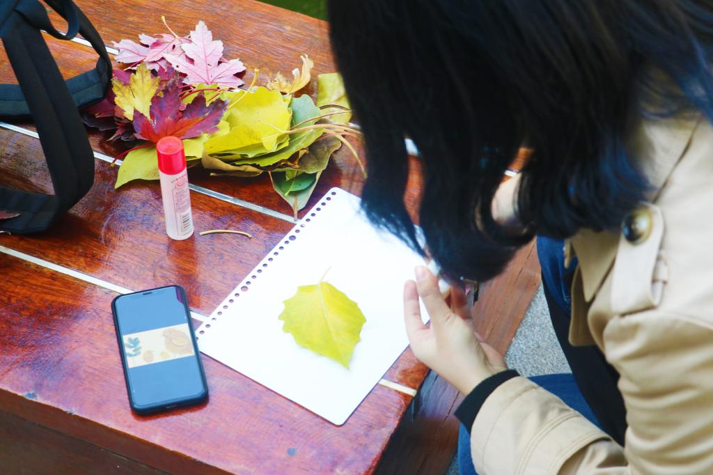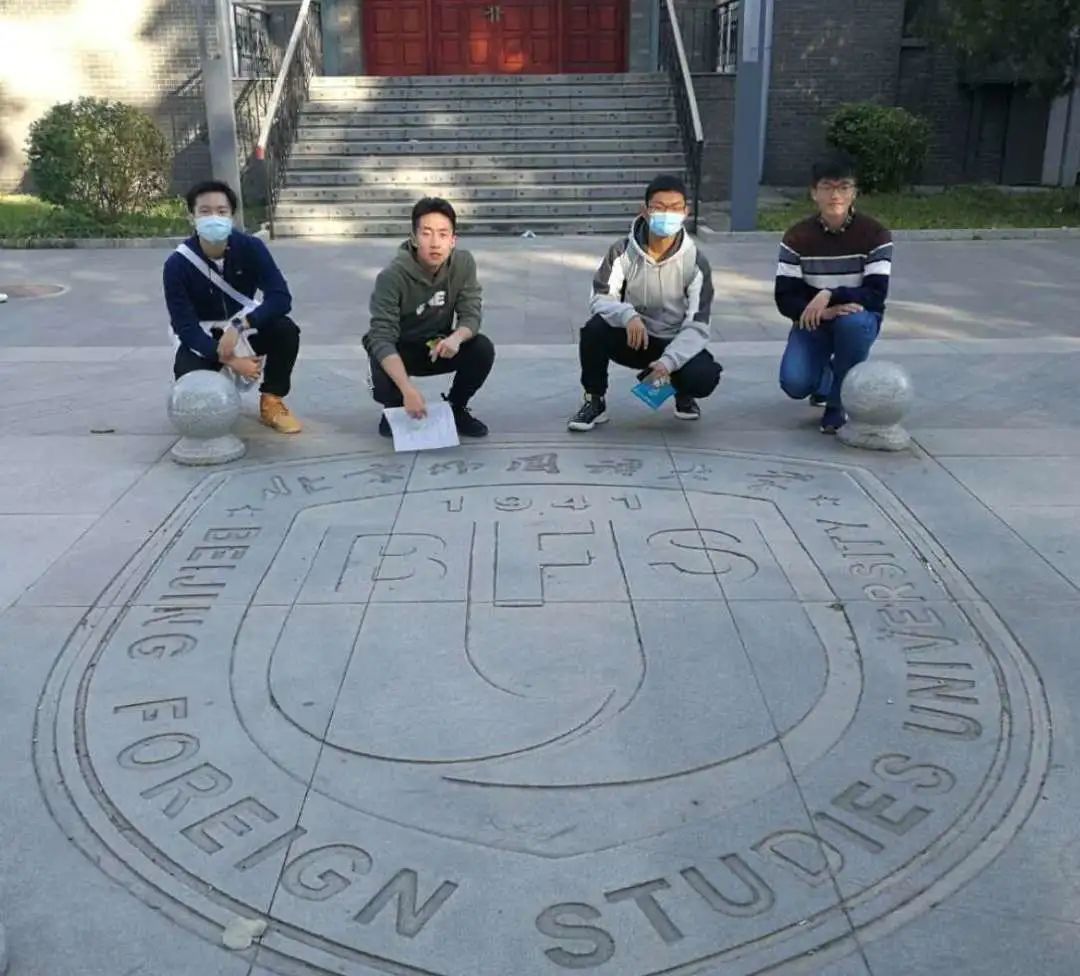 接下来,各小组按照本队计划奔向不同的任务打卡点。有小组来到体育馆并成功找到对象国国旗、有小组梳理北外校史并与校徽合影。活动过半,各队再次相遇,开始练习即将朗诵的诗词,饱含深情的声音在小池塘边不绝于耳。视频录制完毕后,大家进入“四史”答题环节,气氛一下紧张起来,大家都绞尽脑汁力求在这一环节获得满分。而这时,行进速度快的小组已经踏上返回主楼的道路,并沿途搜寻着路旁的落叶作为粘贴画的素材。