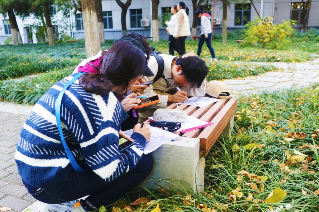 拿到任务单后,同学们早已跃跃欲试,“开始”指令刚刚发出,大家便如离弦之箭一般冲了出去,争先恐后地奔向各打卡处。首先进行的是寻找大卫·柯鲁克雕像活动,虽然雕像的位置比较隐蔽,但同学们还是根据线索找到了雕像,并从介绍中学习了前辈为中国的外语教育事业做出的伟大贡献。