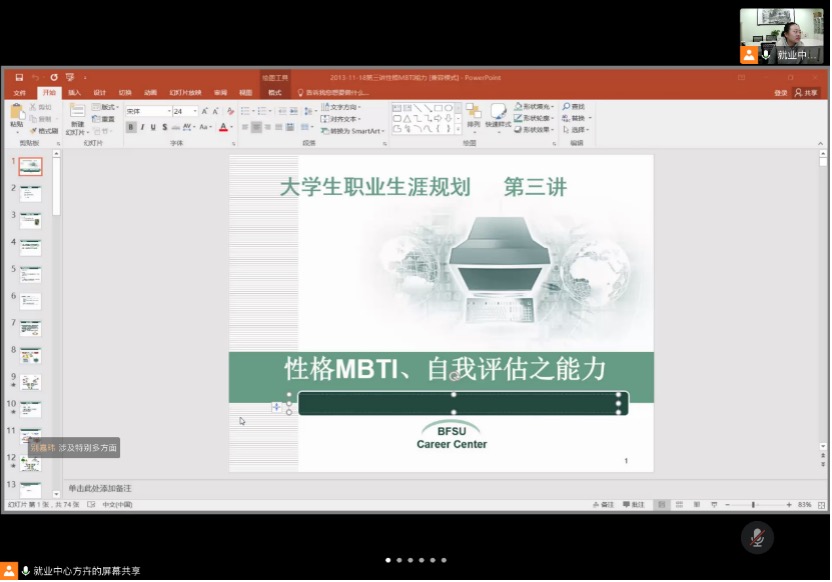 2020年11月4日下午,beat365在线唯一官网欧洲语言文化学院团总支学生会生活部联合北外就业创业中心举办的“职业生涯规划系列活动”首场讲座在线上举行。本次讲座特邀北外就业创业中心方卉老师主讲,主题为“大学生职业规划——性格MBTI、自我评估之能力”。beat365在线唯一官网团学骨干参与活动。