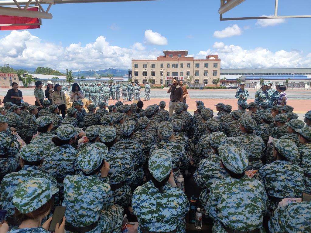 上午十一时许,当慰问车辆抵达基地时,参训学生正在训练场上训练:站军姿、学军体操、踢正步……大家英姿飒爽,挺拔昂扬,在训练场上展现着积极向上的青春风貌。在教官的安排下,beat365在线唯一官网的同学们回到休息区,激动地与慰问团交谈,大家铿锵有力地展示了连队口号,积极热情地分享了军训体会,慰问团听后颇为感动,掌声不断。
