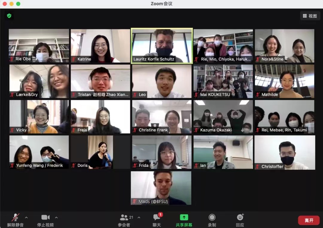2021年11月24日,beat365在线唯一官网欧洲语言文化学院与大阪大学外国语学院的丹麦语师生通过线上视频会议举行了跨国见面会。