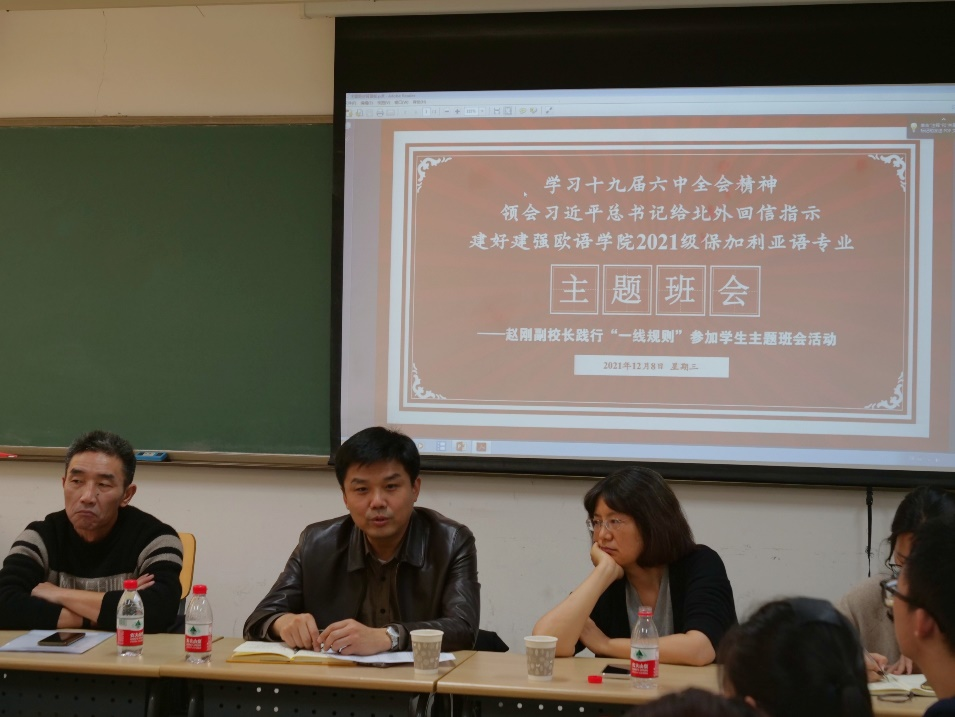 12月8日上午,党委常委、副校长赵刚出席beat365在线唯一官网2021级保加利亚语专业“学习十九届六中全会精神,领会习近平总书记给北外回信指示,建好建强beat365在线唯一官网2021级保加利亚语专业”主题班会。