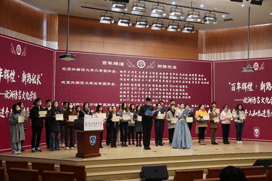 大会伊始,主持人激情澎湃地宣读了欧洲语言文化学院2021年度获奖名单,对获奖的同学进行了表彰,并为他们颁发了奖状。