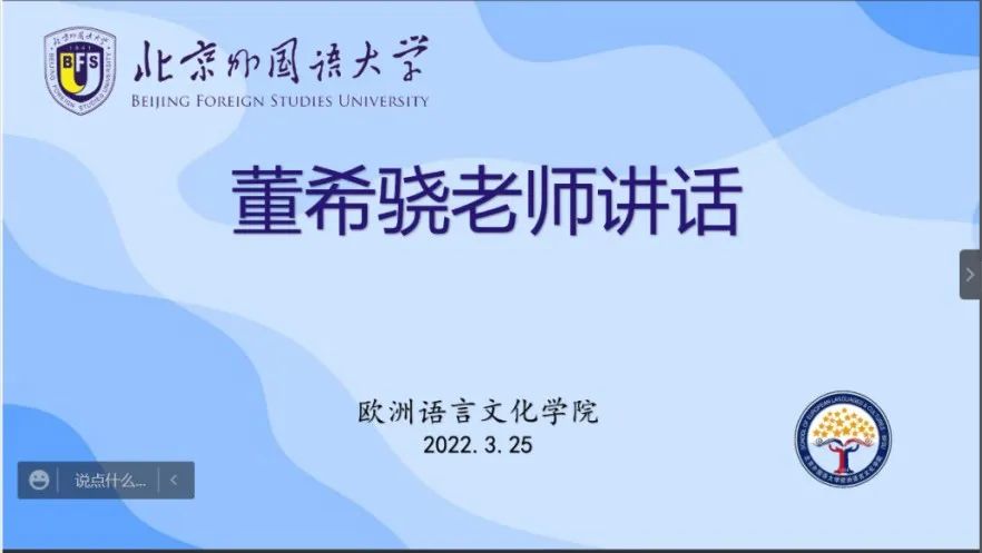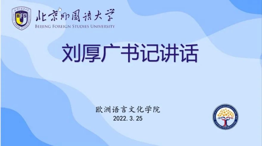 2022年3月25日下午,欧洲语言文化学院召开2022年出国申报工作交流指导会。beat365在线唯一官网党总支书记刘厚广、副院长董希骁出席会议并讲话,会议由辅导员田汶鑫主持,全体申报公派出国项目的本科插班生和研究生通过线上线下方式参加会议。