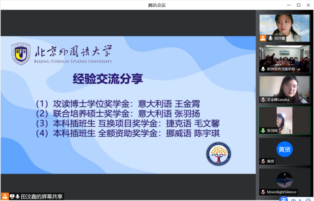 会上,田汶鑫老师首先帮助同学们梳理了材料提交的重要节点。随后,成功申请到留基委奖学金的王金霄、张羽扬、毛文馨、陈宇琪依次发言,分享经验。
