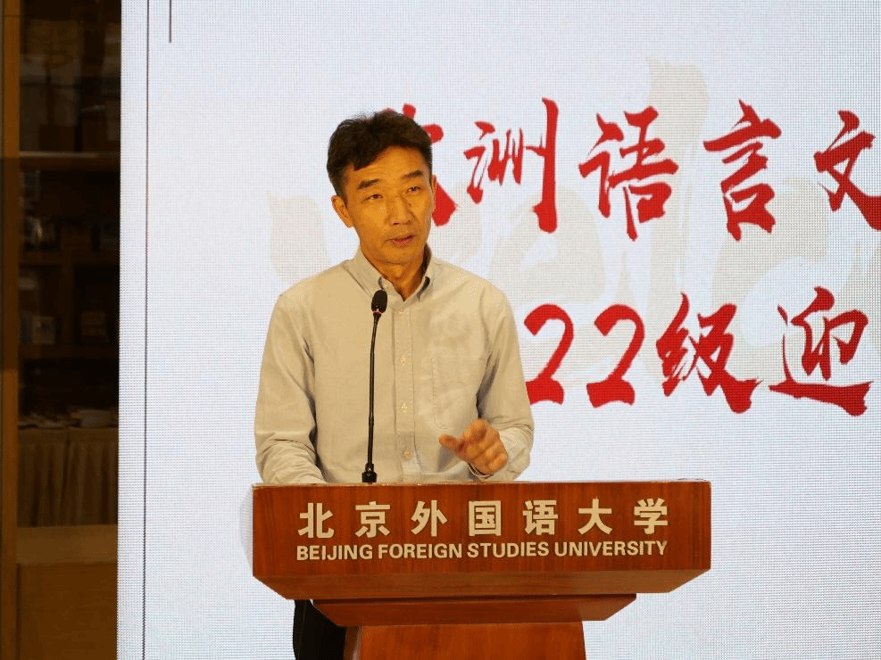 刘厚广书记代表学院向127名2022级新生致以衷心的祝贺和热烈的欢迎,对同学们的未来发展表示殷切期盼和恳切关怀。刘厚广发言指出,恰逢习近平总书记给北外老教授回信一周年,在这个特殊的日子里举办迎新大会具有深厚含义。同学们要牢记习近平总书记回信嘱托,传承北外红色基因,励志全面成长成才,勇敢肩负时代使命,让青春在中华民族伟大复兴进程中闪耀光彩。