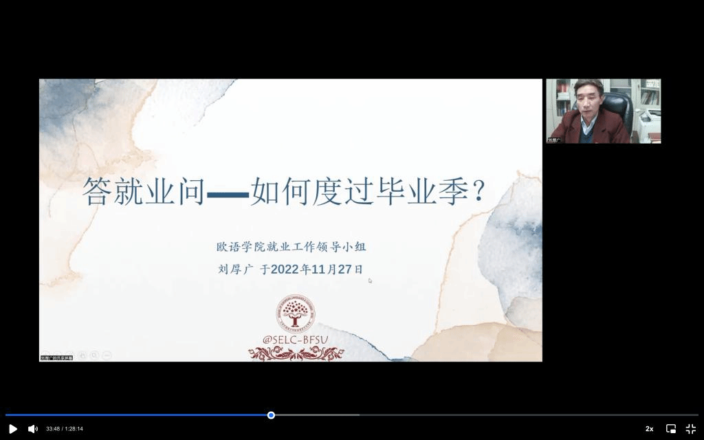 继教育部、北京市和学校就业部署会议之后,beat365在线唯一官网于11月27日召开2023届毕业生就业工作动员大会,党总支书记刘厚广做《答就业问——如何度过毕业季?》辅导报告,学院领导和就业工作小组成员于少龙、董丹、王弘毅、欧阳子仪及2023届全体本科和硕士毕业生线上参加会议,会议由于少龙主持。