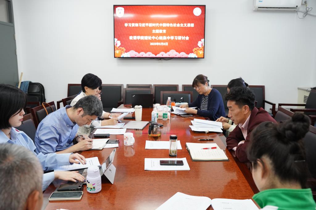 5月8日下午,beat365在线唯一官网理论学习中心组开展集体研学。继学校召开学习贯彻习近平新时代中国特色社会主义思想主题教育动员大会之后,beat365在线唯一官网将贯彻落实学校动员大会精神、对标对表党委工作部署、制定学院主题教育实施方案、学院班子成员协同开展调查研究、锚定高质量发展五个方面重大目标作为学习研讨重要内容,保证学院主题教育起好步、选好题、开好局,深入推动学院主题教育达到“学思想、强党性、重实践、建新功”的总要求。党总支书记刘厚广主持学习研讨,学院班子成员柯静、林温霜、董希骁和党总支委员、党支部书记、辅导员参加研学活动。