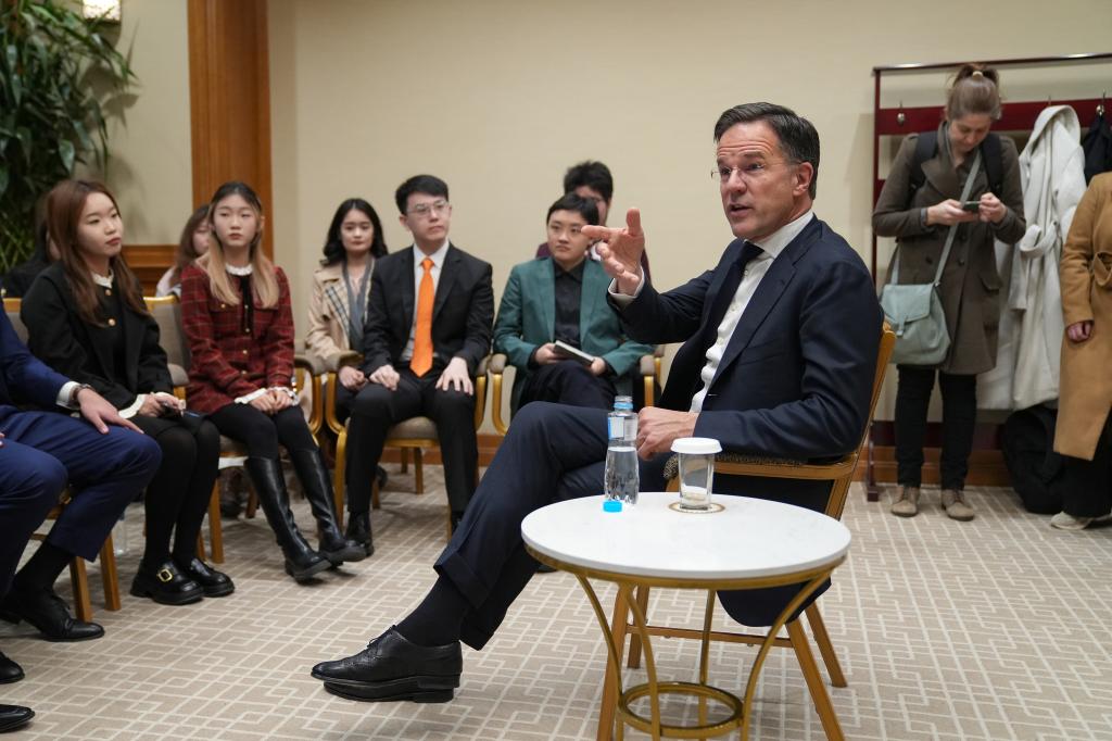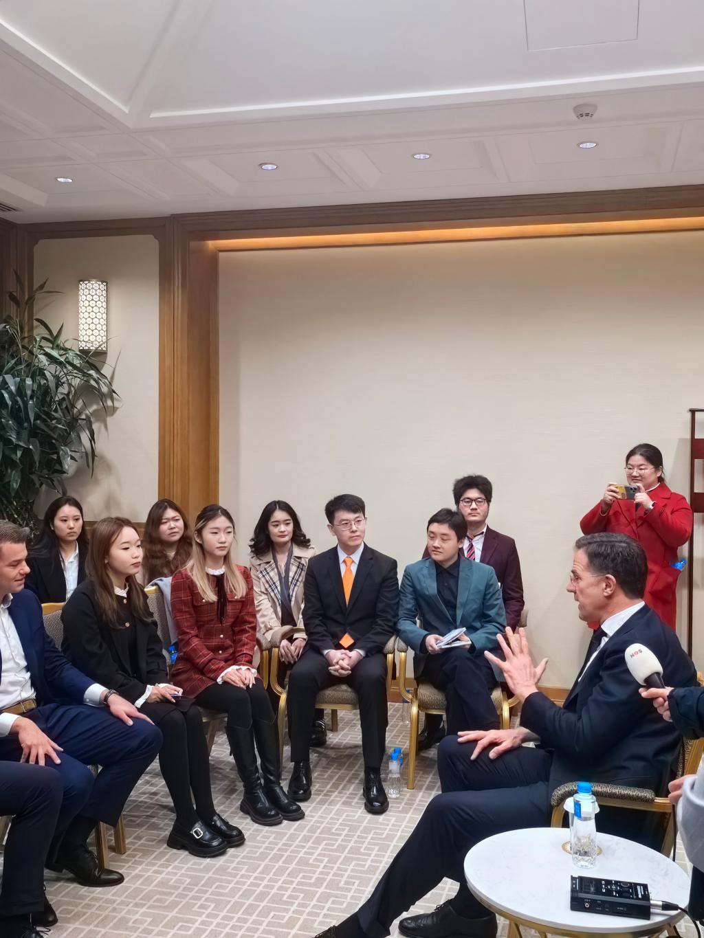 2024年3月27日,欧洲语言文化学院荷兰语专业师生应荷兰王国驻中国大使馆邀请,参加与荷兰首相马克·吕特的交流会。