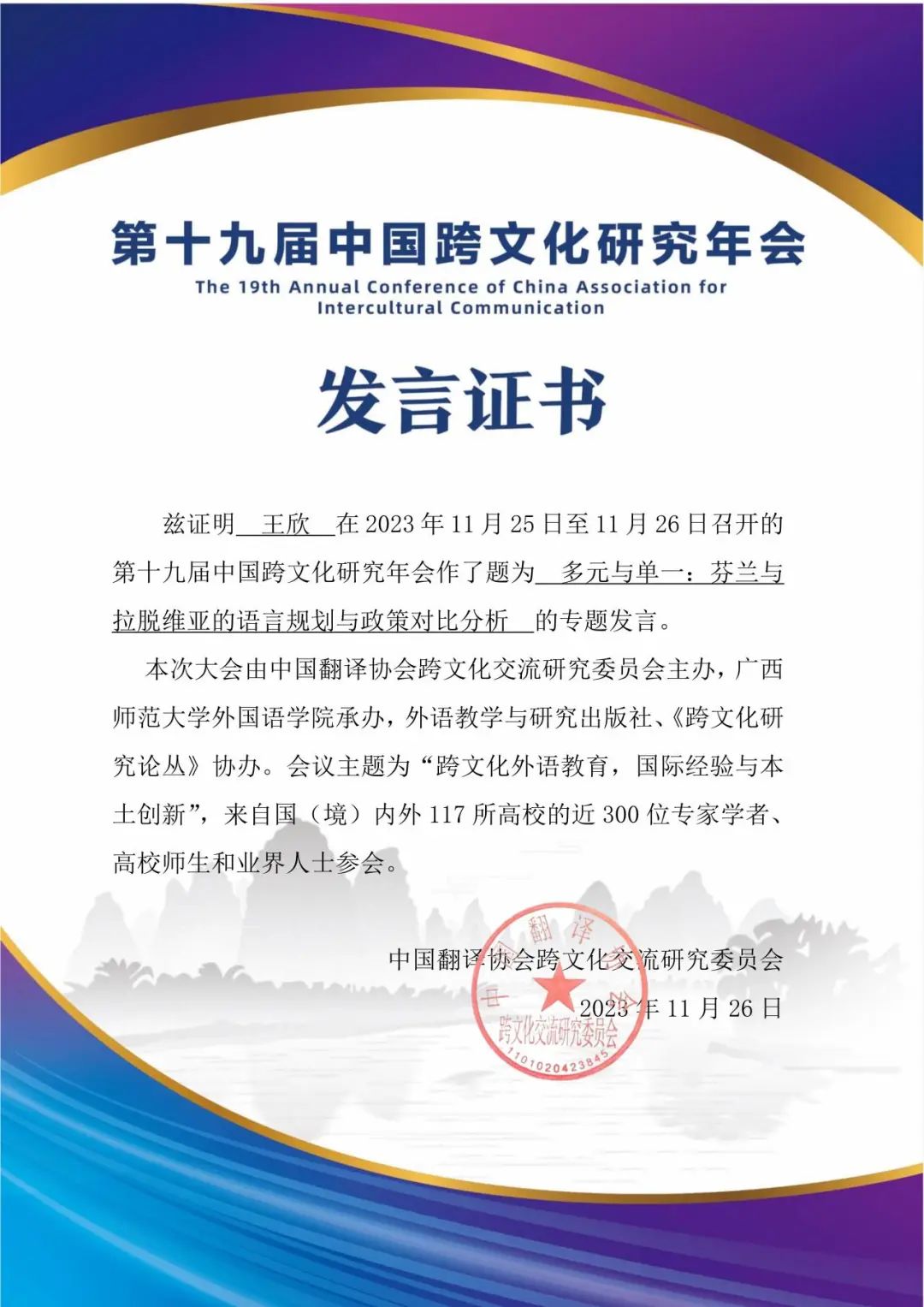 学习一门新的语言就像打开一扇通往新世界的窗户。在北外学习拉脱维亚语的经历为我提供了理解其他文化的全新视角,影响着我看待多元文化、多元价值的方式,并促使我不断探索如何将“美美与共”的观念付诸实践。因此,我积极选修政治学、社会学、传播学等方向的课程,力求拓宽自己的知识面、建立学科理论基础;参加相关科研项目和竞赛,探索跨文化交流的无限可能;在外事活动中担任志愿者,深入体会文化相对主义的真谛;撰写论文参加学术会议,将所学、兴趣与志向结合起来。