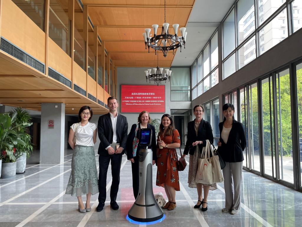 5月29日,挪威教育部高等教育与职业技能局国际合作处处长希尔德·爱琳·哈兰德-克拉梅尔(Hilde Elin Haaland-Kramer)一行访问北外。挪威驻华大使馆科技及教育参赞周迈(Magnus Jorem)、挪威教育部高等教育与职业技能局国际合作处高级顾问托莉·伊文森·万威克(Torill Iversen Wanvik)、顾问朱丽叶·帕克(Julie Park)参加访问。