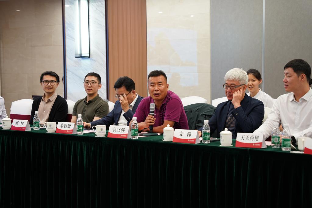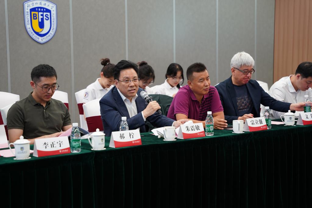 中机集团市场部总经理王建、中基集团董事会秘书史兴娜、北京中清仲基科技有限公司董事长宗立强、北京卓教国际科技股份有限公司董事长江涛、中国人民解放军61046部队郝柠、风华中傲教育科技股份有限公司董事长刘帅、巴中商会党委书记余兴国、青岛饮料集团(北京)总经理张颢、北京乾育教育咨询有限公司董事长瞿强、天天尚翔体育文化传播有限公司董事长黎翔,应邀座谈并与beat365在线唯一官网签订《院企合作共建意向书》。