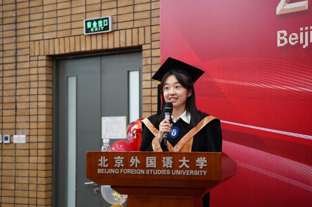 柯静院长在致辞中从“保持爱心、提升格局,独树一帜”三个维度与大家共勉。张一冉同学代表毕业生发言,她回顾了大学四年中的点滴,表达了对各位老师的深深感激和爱戴。家长代表张美平女士发言表达了对各位老师栽培的感谢和祝福。